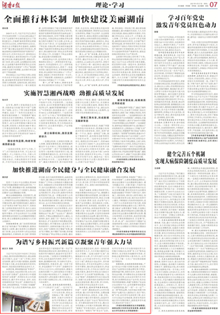 本网讯(人文学部 李绮航 陈胤嘉)近日,《湖南日报》刊发了我院青年教师赵文力同志的理论文章《为谱写乡村振兴新篇章凝聚青年强大力量》一文。