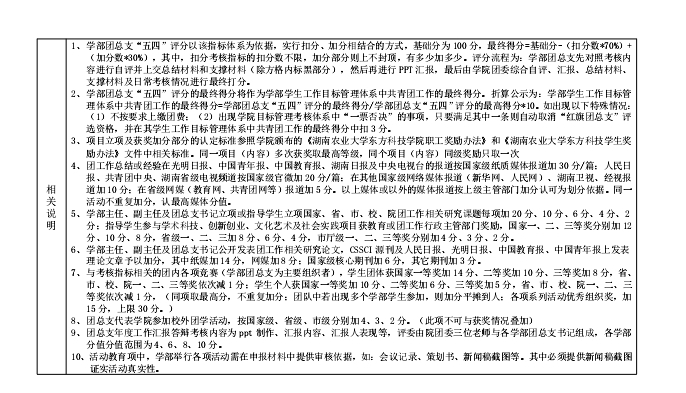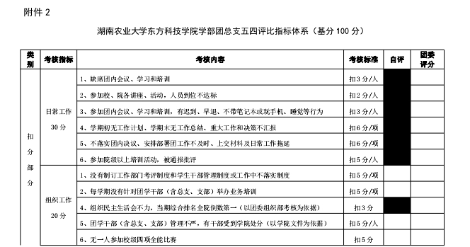 2.湖南农业大学东方科技学院学部团总支五四评 比指标体系