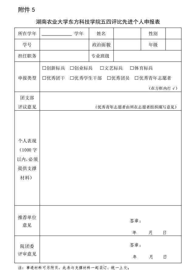 5.湖南农业大学东方科技学院五四评比先进个人 申报表