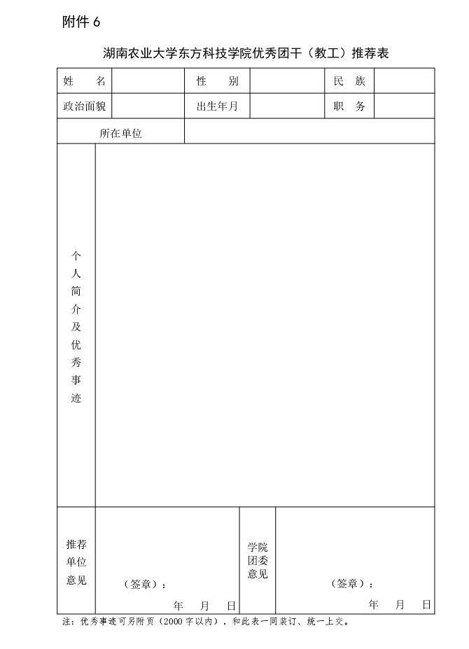 6.湖南农业大学东方科技学院优秀团干(教工) 推荐表