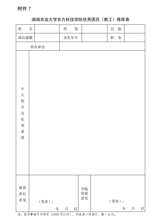 7.湖南农业大学东方科技学院优秀团员(教工) 推荐表