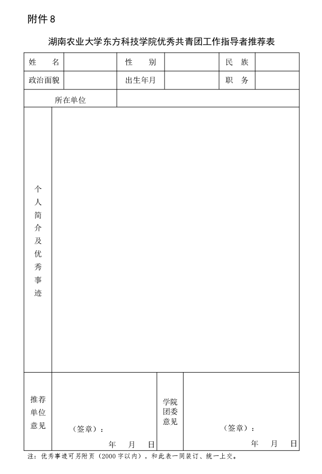 8.湖南农业大学东方科技学院优秀共青团工作指 导者推荐表