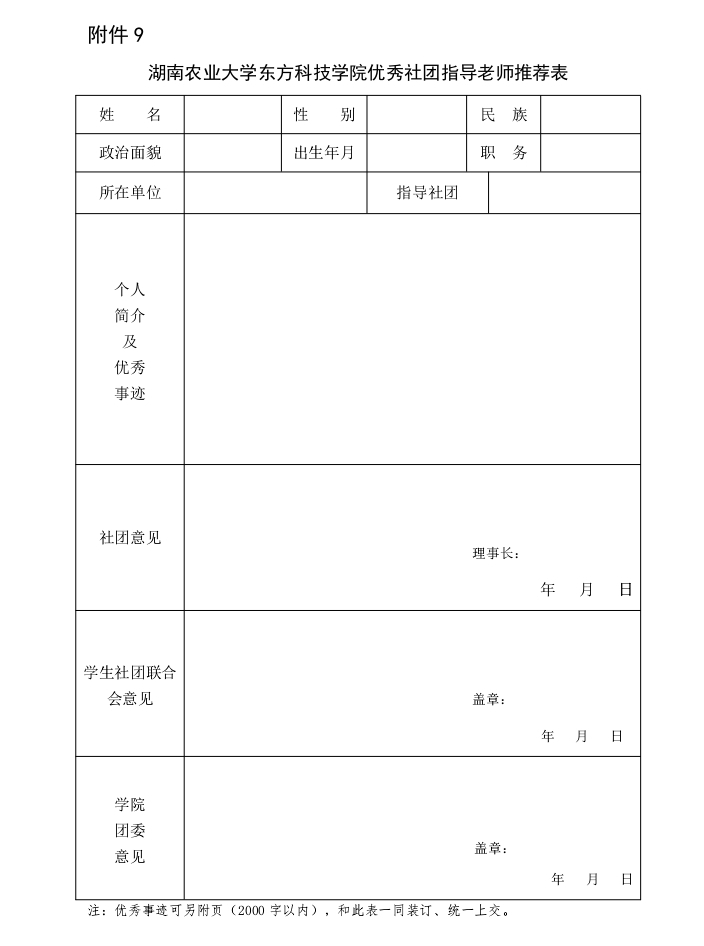 9.湖南农业大学东方科技学院优秀社团指导老师推荐表