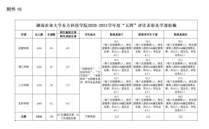 10.湖南农业大学东方科技学院 2020-2021 学年度 “五四”评比表彰各学部份额