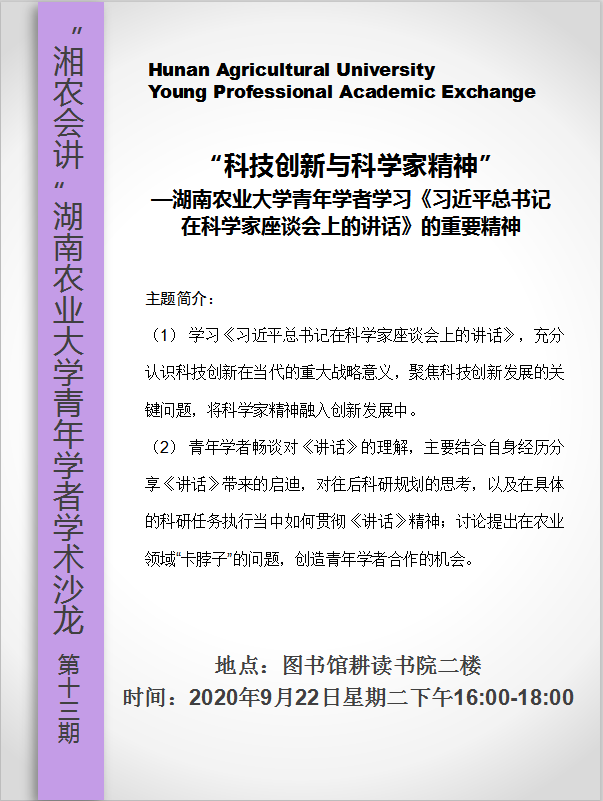 “科技创新与科学家精神”—湖南农业大学青年学者学习《习近平总书记在科学家座谈会上的讲话》的重要精神