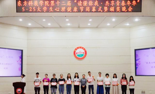 本网讯(心理中心 韩洁)5月31日晚7:30,东方科技学院心理健康与职业辅导中心在大成厅举办第十二届大学生“5·25”心理健康节闭幕式暨颁奖晚会。学院党委副书记、副院长邵华老师、学院学工部杨乔清老师、学院心理中心主任朱佳老师以及各学部心理专干老师参加了此次活动。