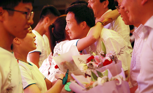符少辉校长与毕业生拥抱