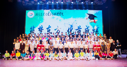 本网讯(团委 周笑妮)六月里,激情四射;毕业季,情意浓浓。青葱岁月酸甜苦辣莫失莫忘,难忘今朝载歌载舞青春同行。6月14日晚,学院“筑梦东方 破茧成蝶”欢送2018届毕业生晚会在大礼堂隆重举行。校党委书记周清明,校长符少辉,校党委副书记卢向阳,校党委委员、副校长易自力、段美娟,校关工委常务副主任彭克勤,校团委书记覃红燕及学院全体院领导莅临现场,与广大师生共享视听盛宴,为2018届毕业生送别。