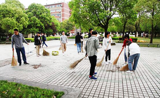 为了提高师生的环保意识,营造出浓厚的绿色校园氛围,提高校园环境卫生质量,校园大扫除行动以后将在每周五下午定期开展。