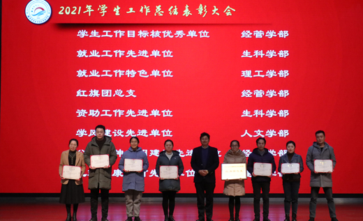 大会以“坚持‘五育并举’全面发展,奏响‘三全育人’时代强音”为主题,用“最给力、最靠谱、最暖心、最青春、最坚强”五个篇章,全面回顾了2021年学院学工系统在学院党委、行政的坚强领导下,全体师生奋发图强、勇于拼搏、开拓进取,取得了较好的成绩。学院领导为红旗团支部、校先进班集体、国家奖学金获得者、优秀团干、优秀学生干部、校三好学生标兵等集体和先进个人颁奖,表彰了学生工作目标考核优秀单位、就业工作先进单位、红旗团总支、资助工作先进单位、学风建设先进单位、公寓精神文明建设先进单位、心理健康教育先进单位、优秀班主任代表等单位和个人。
