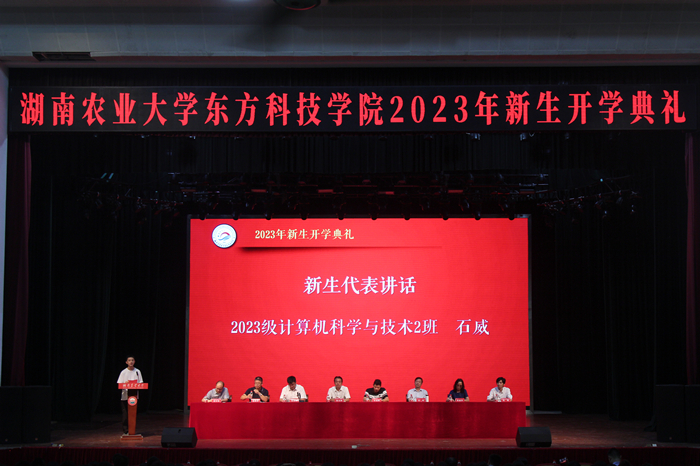 2023级计算机2班石威代表新生表达了对大学生活的热切期盼,并表示在未来四年的大学生活中将潜心学习、提升能力,用智慧和青春书写人生新篇章。