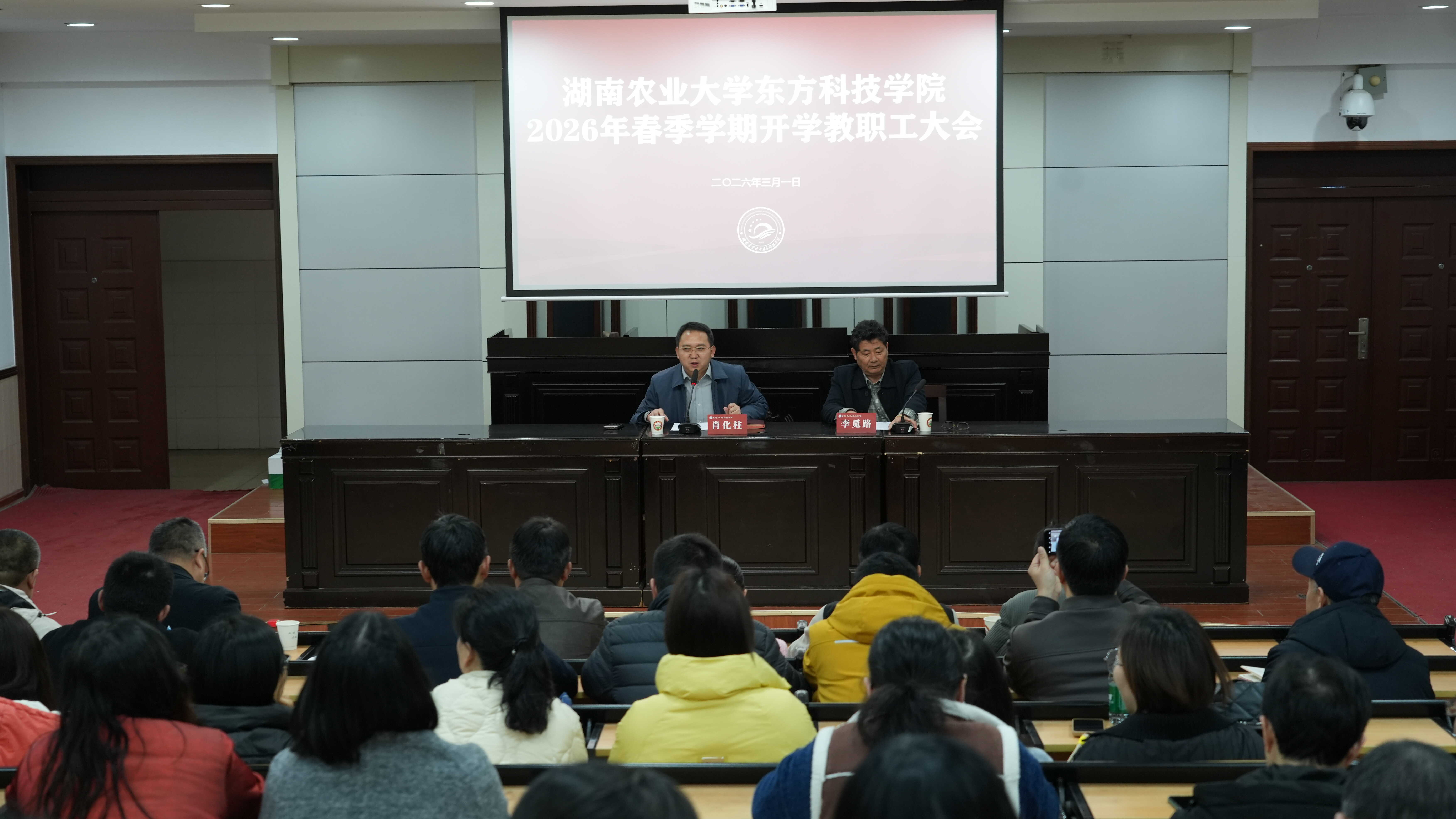 本网讯(党政办 董珂)3月1日上午,学院召开2026年春季学期开学教职工大会。全体学院领导出席,全体教职工参加会议。会议由学院党委书记肖化柱主持。
